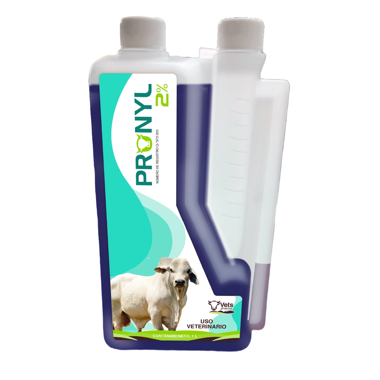 Pronyl 2% antiparasitario Pour-on indicado para el tratamiento y control de infestaciones por mosca del cuerno (Haematobia irritans), mosca de los establos (Stomoxys calcitrans), garrapatas (Rhipicephalus microplus y Amblyomma mixtum), piojos masticadores (Damalina bovis), piojos chupadores (Linognathus vituli) y miasis nodular (Dermatobia hominis).